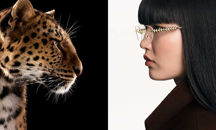 The Clash de Cartier selection is expanded, showcasing designs inspired by the Maison’s jewelry creations. Signature elements such as the movable picot studs and the clou carré are intricately reinterpreted for eyewear pieces