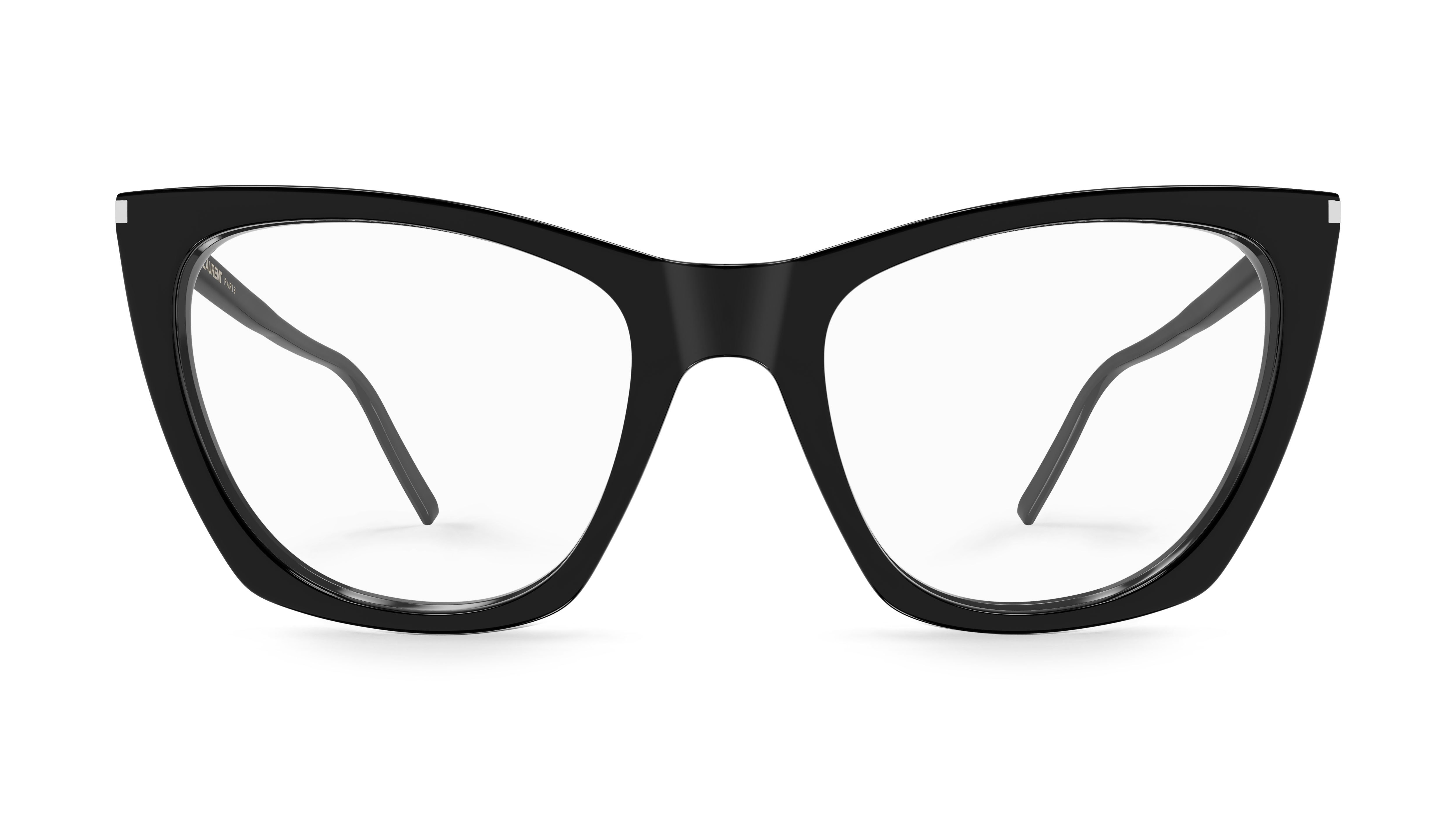 Feminine soft cat-eye optical frame with Saint Laurent lettering logo on the temples